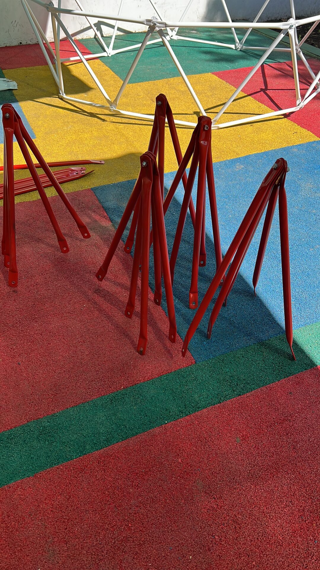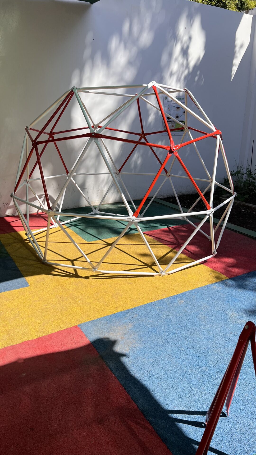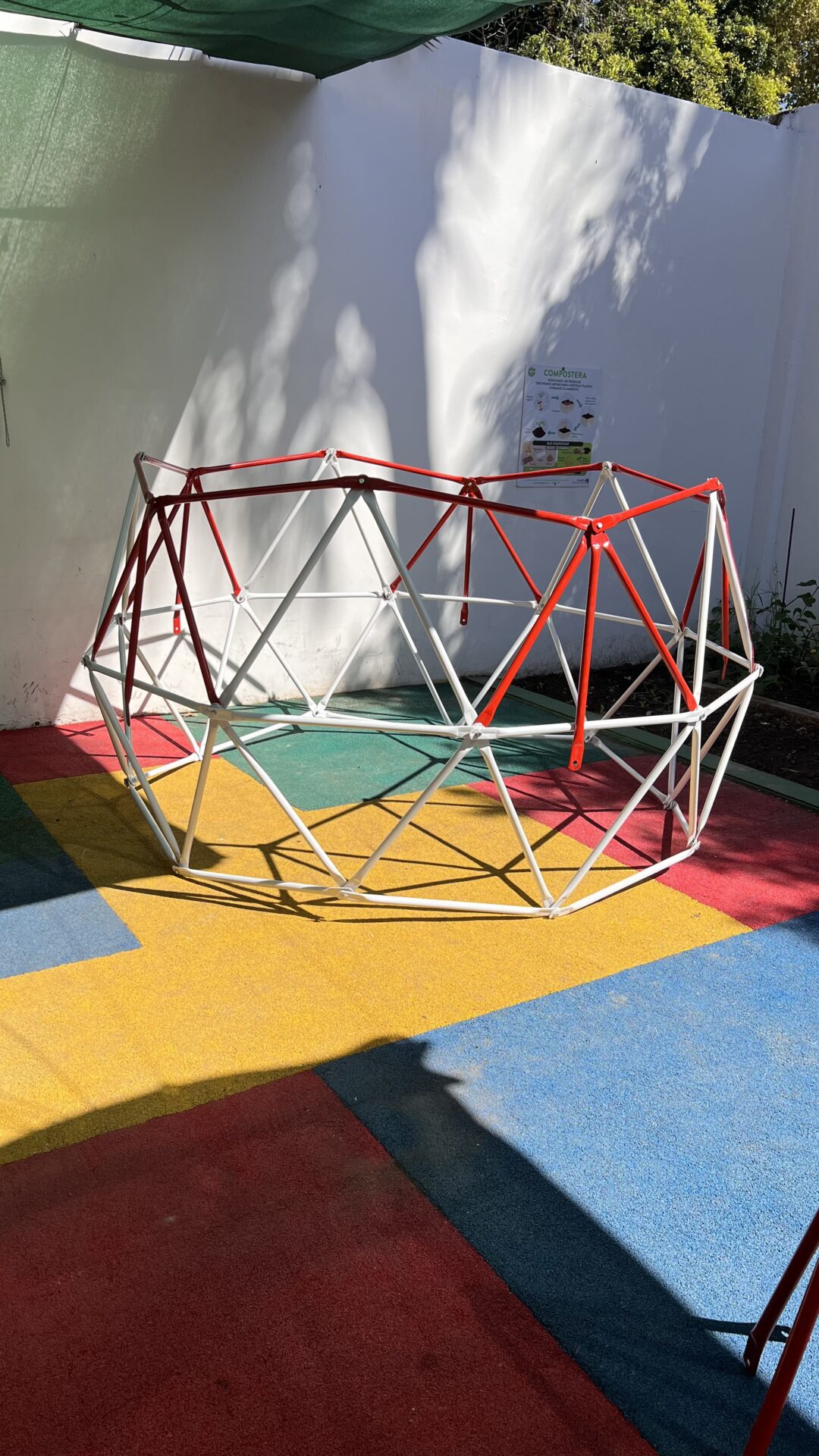 Los domos trepadores son la última tendencia en juegos para plazas y jardines. Según la edad de los chicos, será el tamaño del domo, variando el diámetro, la altura, la disposición de los triángulos y los colores.