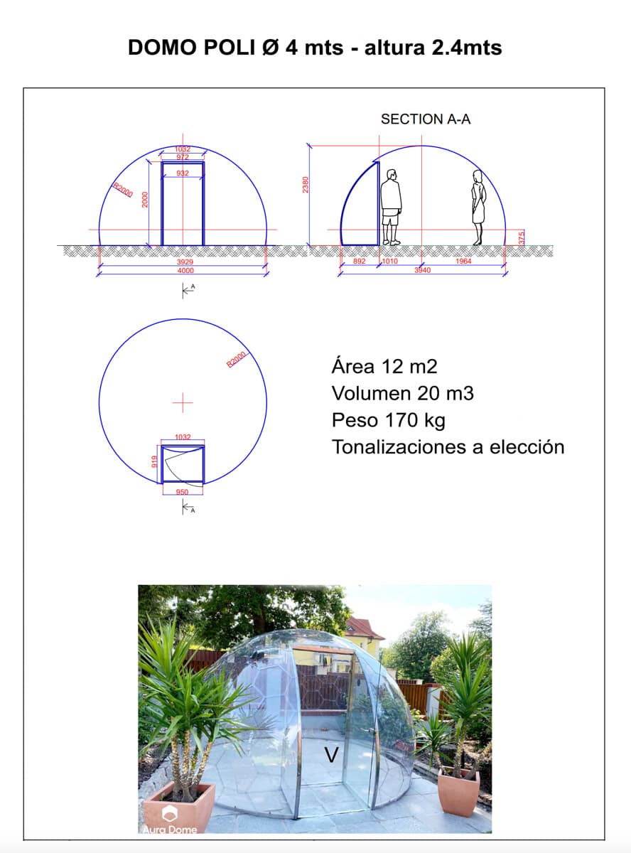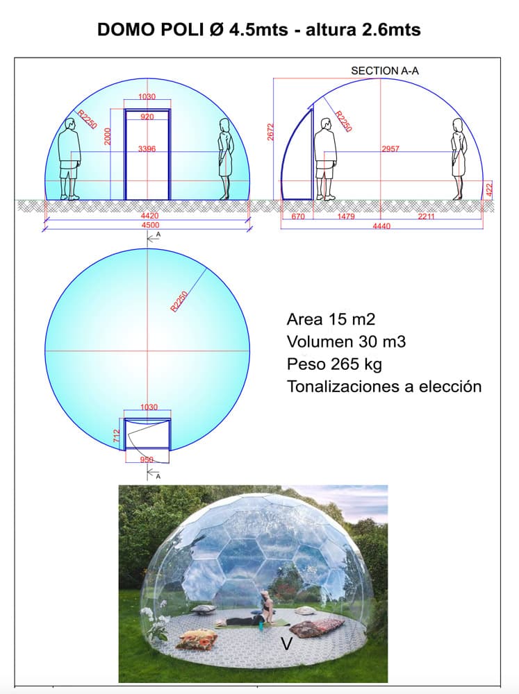 Nuestros domos de Policarbonato, diseñados en Argentina por Pietra, son estructuras sin marco totalmente transparente, que vienen en diferentes modelos de tamaño para diferentes resistencias a cargas de nieve y viento.