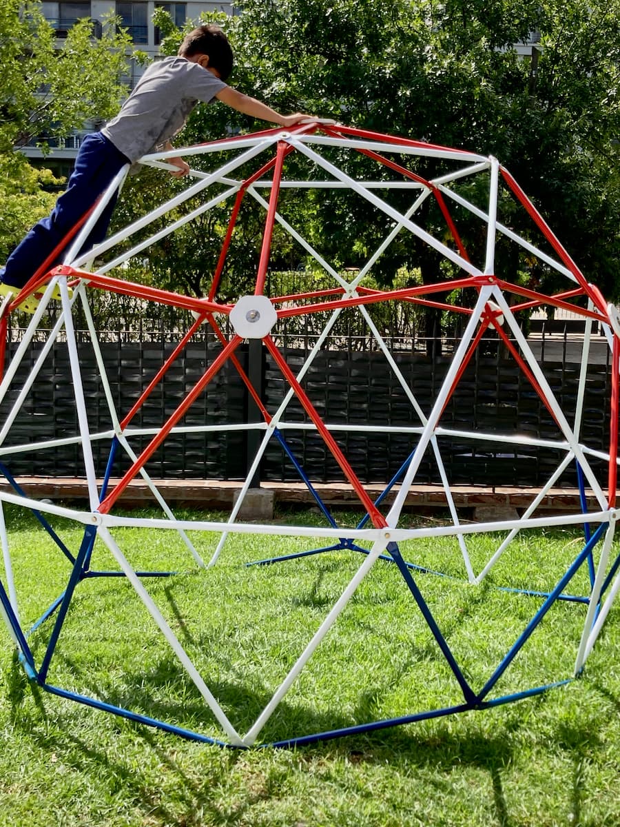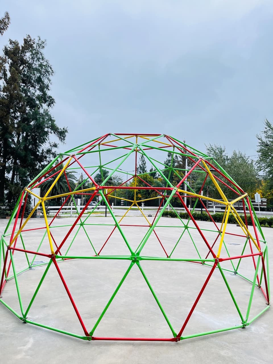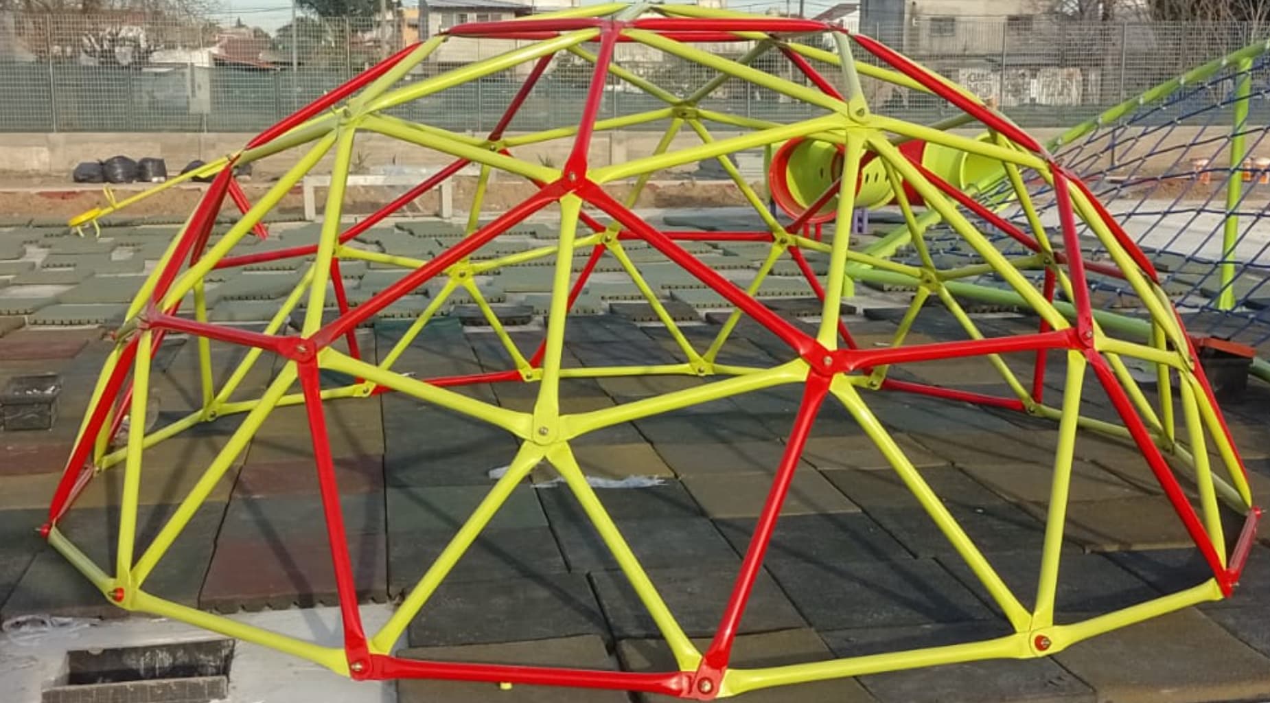 Los domos trepadores son la última tendencia en juegos para plazas y jardines. Según la edad de los chicos, será el tamaño del domo, variando el diámetro, la altura, la disposición de los triángulos y los colores.