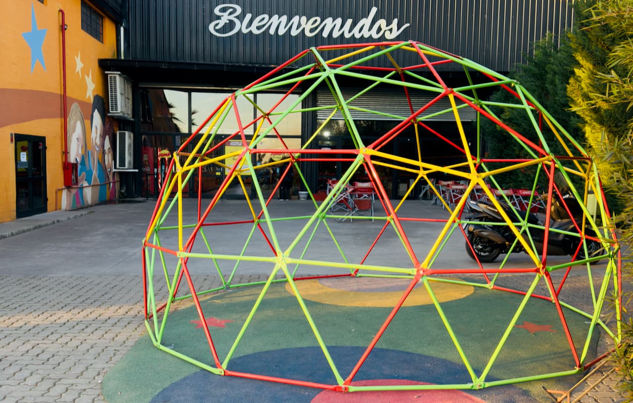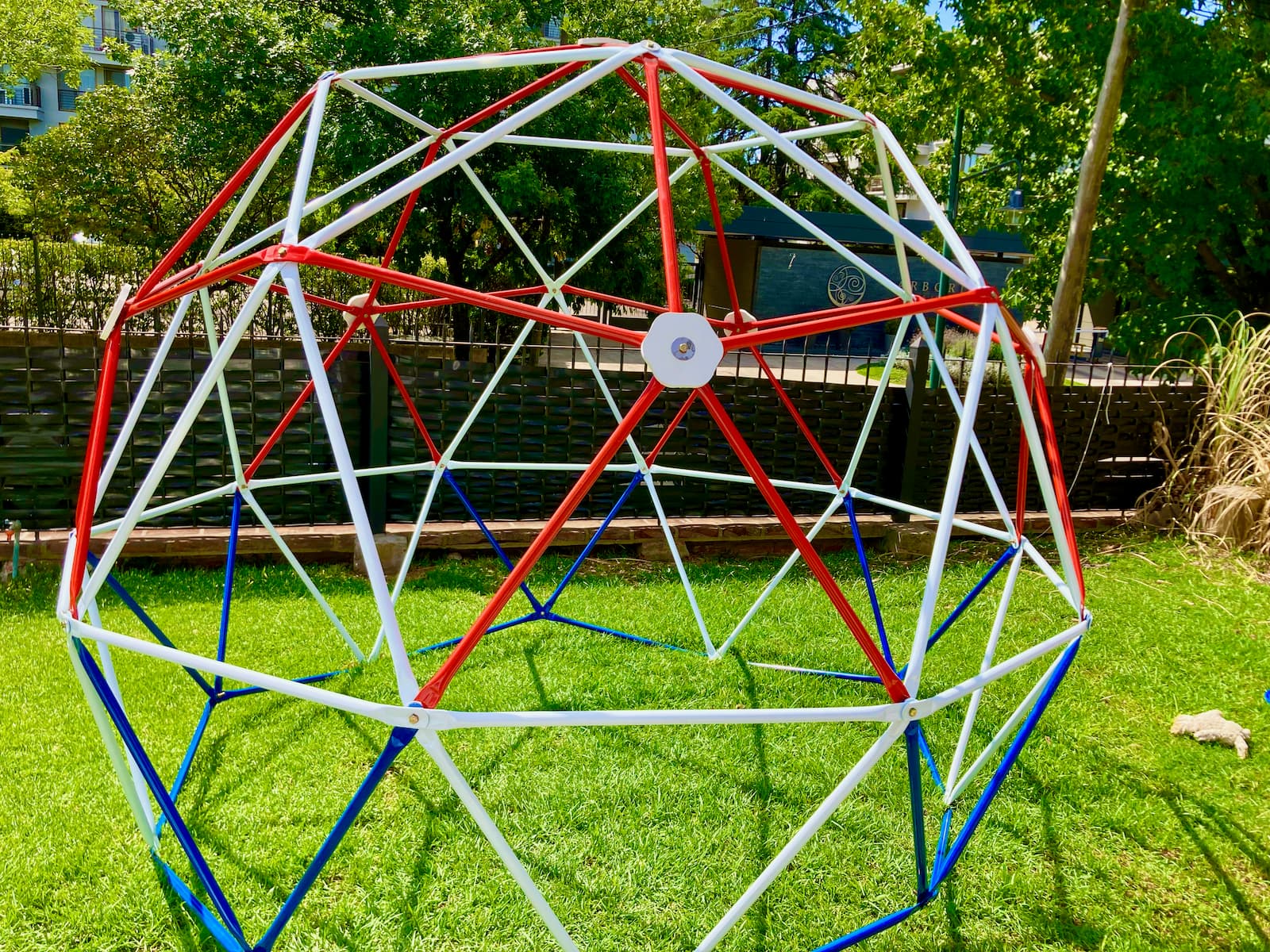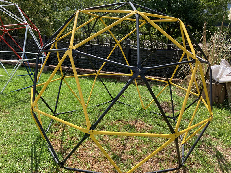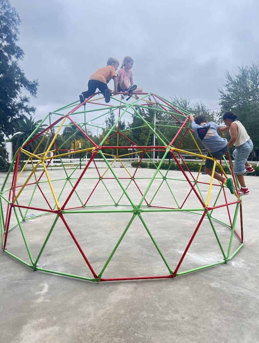 Los domos trepadores son la última tendencia en juegos para plazas y jardines. Según la edad de los chicos, será el tamaño del domo, variando el diámetro, la altura, la disposición de los triángulos y los colores.